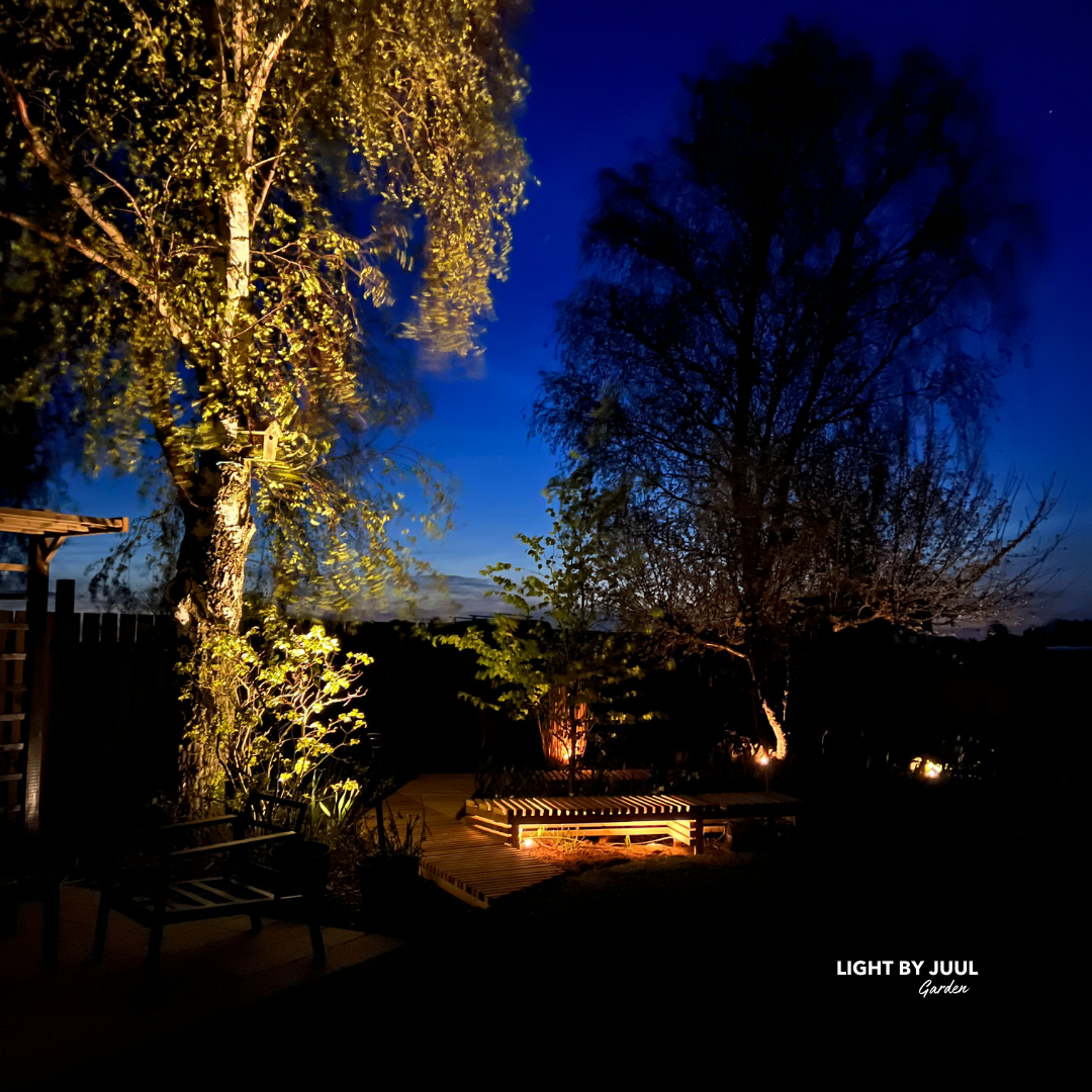 Med lyset fra Light By Juuls lamper under dine træer, i dine bede eller omkring din terrasse, kan du skabe en helt anderledes varm og særlig stemning i din have.