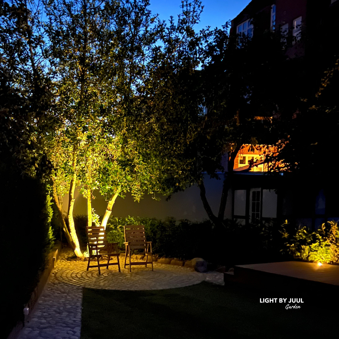 Med lyset fra Light By Juuls lamper under dine træer, i dine bede eller omkring din terrasse, kan du skabe en helt anderledes varm og særlig stemning i din have.