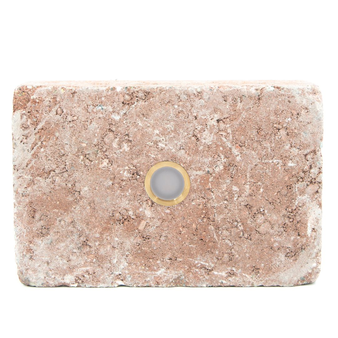 Du kan nemt erstatte en af dine eksisterende fliser med denne specialdesignede sten og tilslutte lampens kabler til en omformer fra Light By Juul – så har du straks lys i din belægning.