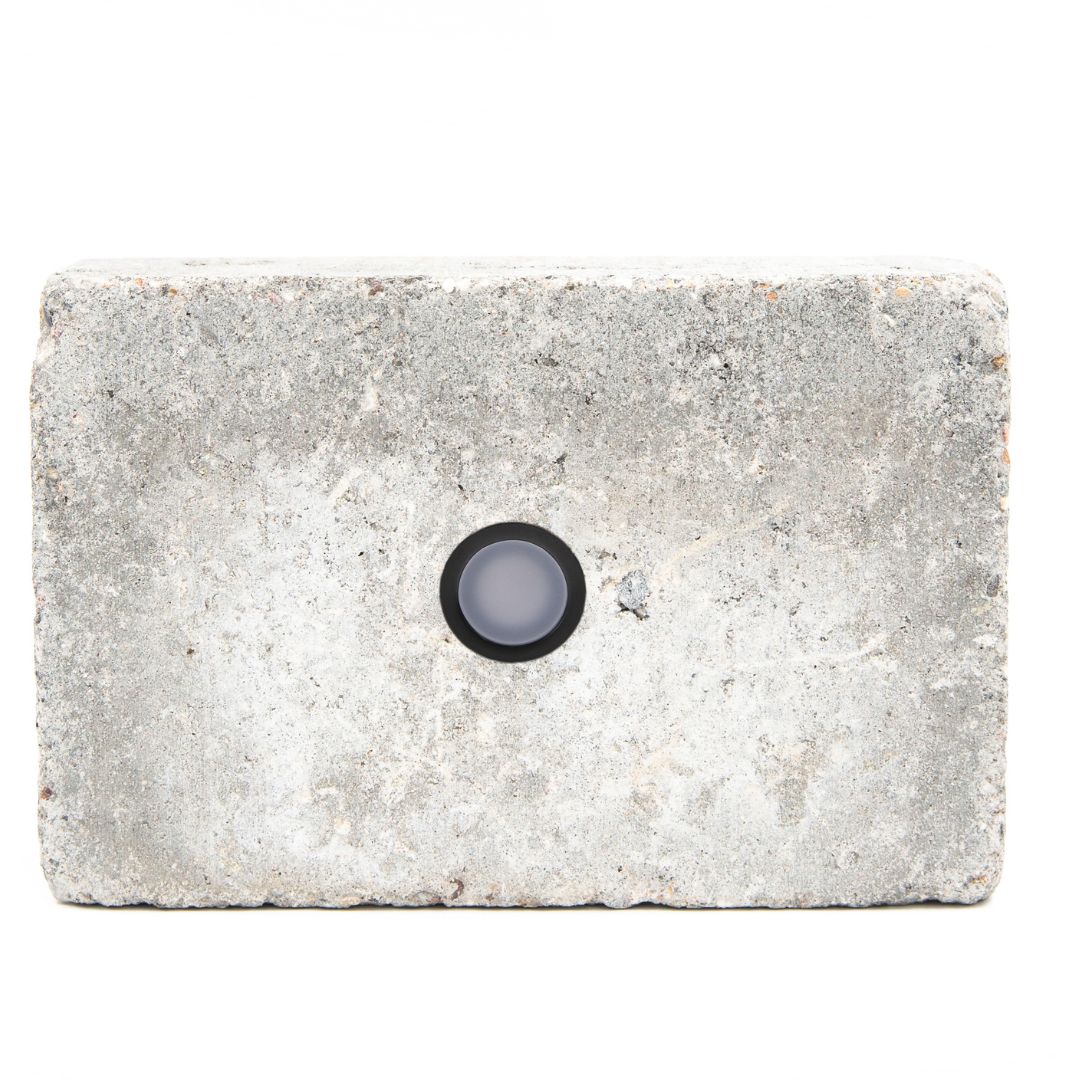 Du kan nemt erstatte en af dine eksisterende fliser med denne specialdesignede sten og tilslutte lampens kabler til en omformer fra Light By Juul – så har du straks lys i din belægning.