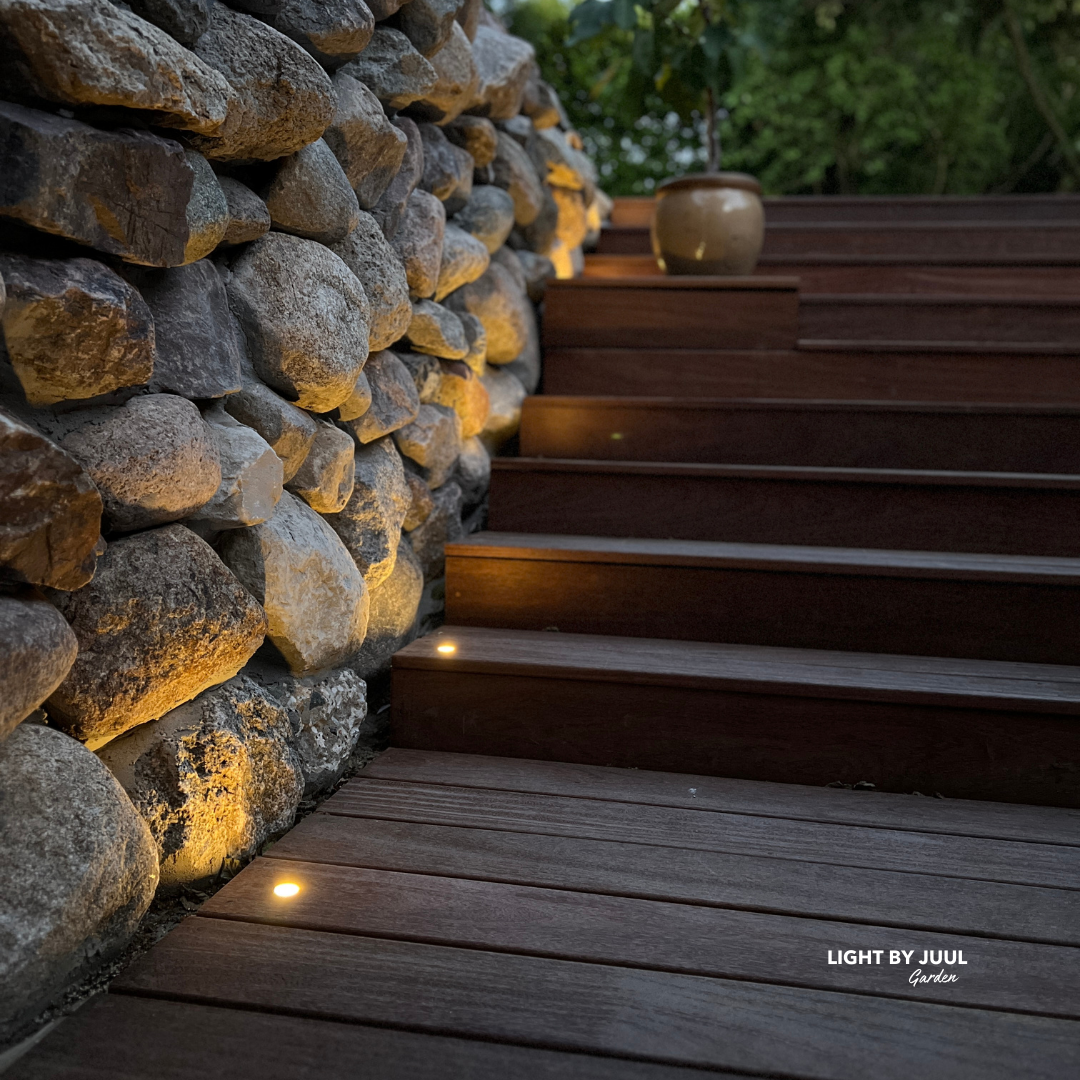 Hos Light By Juul har vi stor erfaring med, hvordan man kan fremhæve de helt særlige kvaliteter ved forskellige huse og haver … og hvis du har en særlig sten eller andet, som ville se godt ud med lys i, er du velkommen til at ta’ fat i os, så vi kan hjælpe dig med at finde en god løsning.