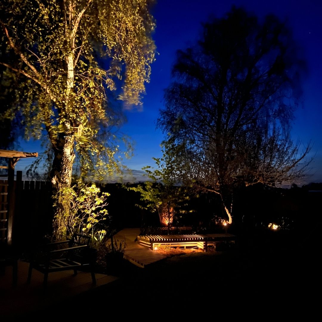 Med lyset fra Light By Juuls lamper under dine træer, i dine bede eller omkring din terrasse, kan du skabe en helt anderledes varm og særlig stemning i din have.