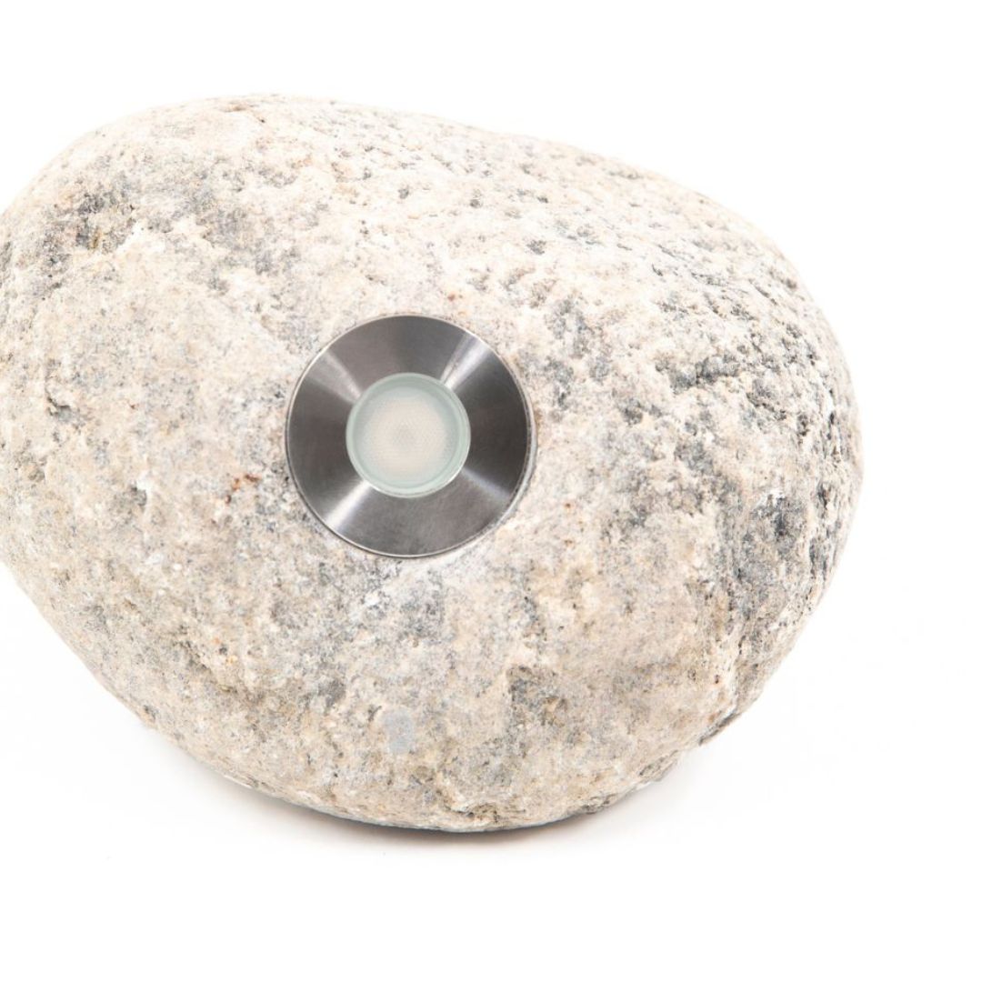 Hver sten fræses præcist, så Juulius 3-lampen ligger plant med overfladen og integreres smukt i omgivelserne. Stenen måler ca. 7x18 cm, men størrelser og farver varierer, hvilket giver et unikt og naturligt look.